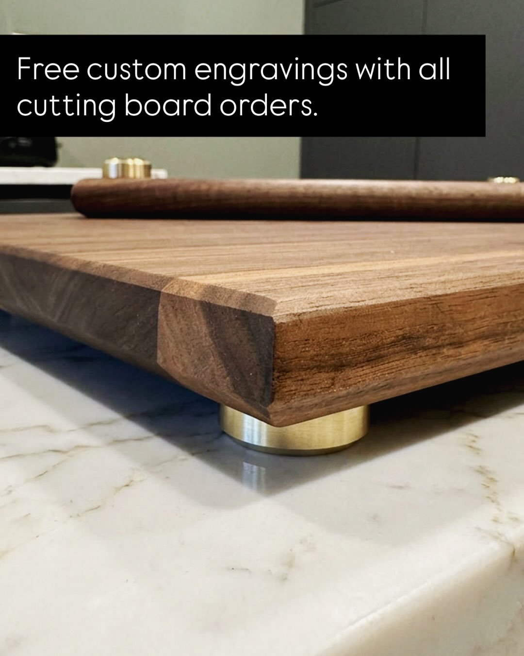 Edge-grain walnut cutting board with non-slip brass feet.